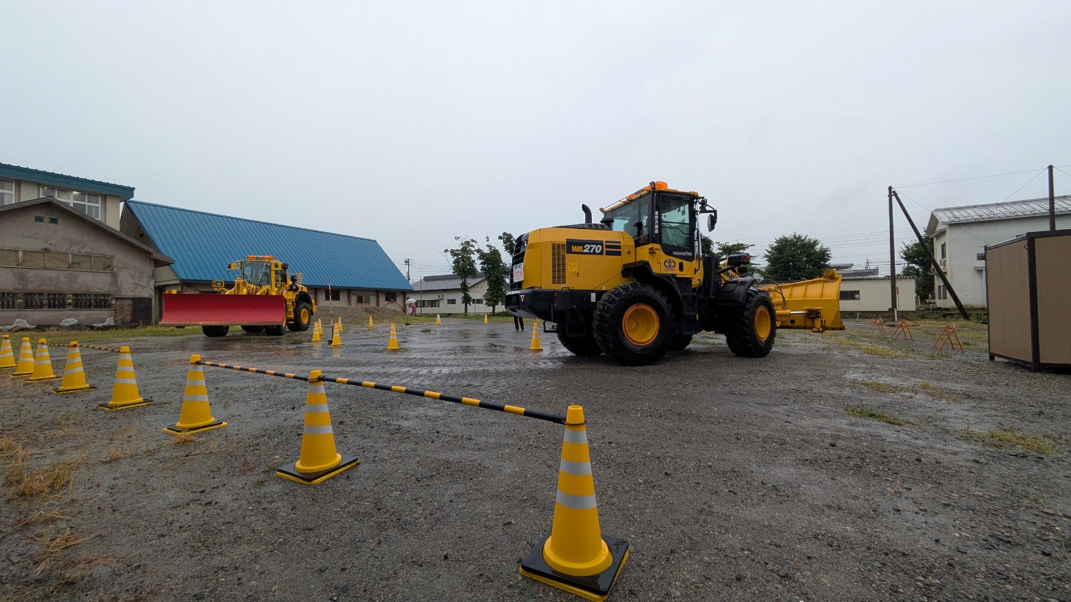 操作指導員の隣に乗り、排土板の上下動操作とコーン周りの前進を体験してもらいました。