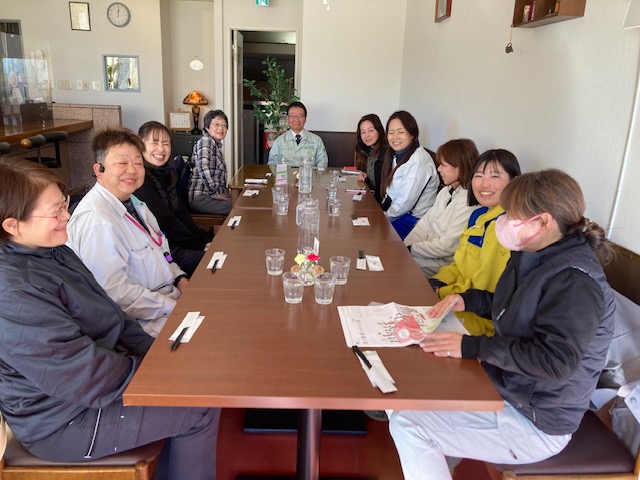 伊那市 守屋建設(株) 参加者 担当副支部長、女性部会員7名、女性職員2名